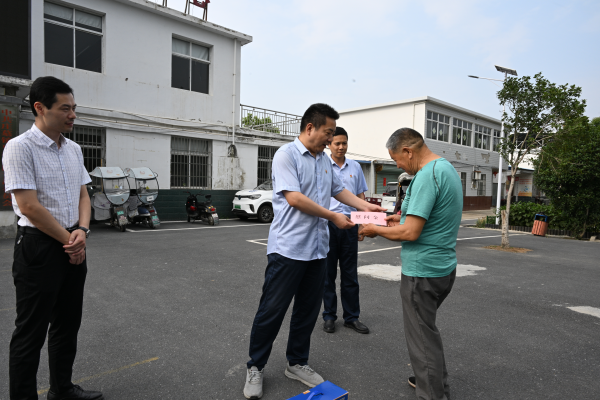 在棗林社區(qū),褚有春首先與社區(qū)工作人員進(jìn)行了親切交流,了解了社區(qū)的基本情況。隨后,在莊墓鎮(zhèn)組織委員吳瑾陪同下先后走訪了三位困難老黨員的家庭。在走訪過程中,褚有春詳細(xì)詢問了老黨員們的身體狀況、生活情況以及存在的困難并為他們送上了慰問品和慰問金,也鼓勵(lì)他們繼續(xù)發(fā)揮余熱,為社區(qū)的發(fā)展和穩(wěn)定貢獻(xiàn)自己的力量。