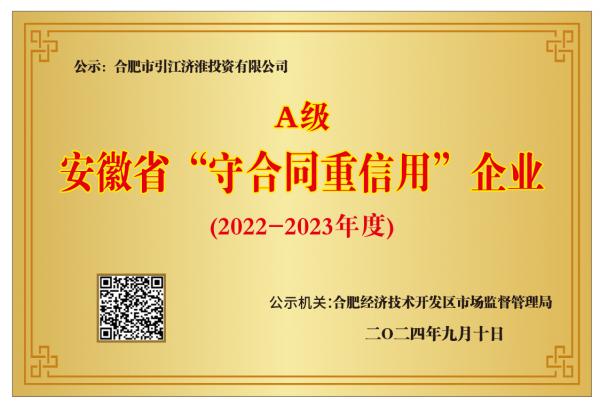 近日,安徽省“守合同重信用”企業(yè)公示平臺(tái)發(fā)布了2024年度安徽省“守合同重信用”企業(yè)名單,公司獲評(píng)安徽省A級(jí)“守合同重信用”企業(yè)。