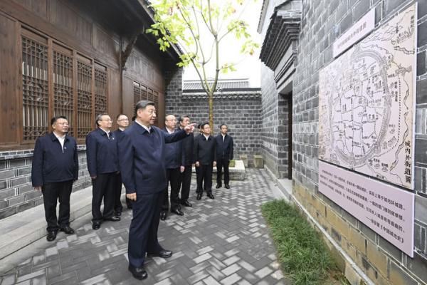 10月17日至18日,中共中央總書(shū)記、國(guó)家主席、中央軍委主席習(xí)近平在安徽考察。這是17日下午,習(xí)近平在安慶桐城市六尺巷考察。新華社記者 燕雁 攝