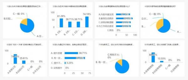 公司始終將培訓評估視為檢驗培訓成果、優(yōu)化培訓體系的重要抓手。在7月開展的員工業(yè)務能力提升專項培訓結束后,相關部門精心設計了涵蓋課程內(nèi)容實用性、與工作的貼合度、講師授課水平、培訓組織安排等多個方面的調(diào)查問卷,通過線上方式發(fā)放給參訓員工,確保全面收集大家對培訓各環(huán)節(jié)的真實評價。在收到的31份調(diào)查問卷中,80%的參訓人員認為課程設置“非常貼合”工作實際,97%的參訓人員認為通過培訓,自身業(yè)務水平“有所提升”。培訓管理部門通過對培訓工作中的經(jīng)驗與不足進行深度總結,形成閉環(huán)管理模式,持續(xù)推動后續(xù)培訓方案不斷優(yōu)化,推動培訓質(zhì)量有效提升,助力員工實現(xiàn)全面進階,為公司高質(zhì)量發(fā)展凝聚人才合力。